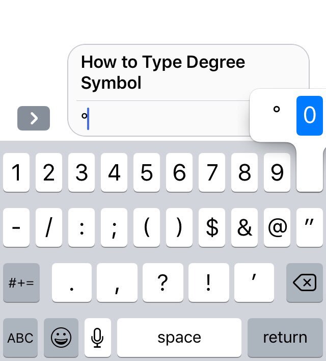 First hit the 123 button to see the numerical keypad. Web For typing the symbol of degree symbol on iPhone you only need to switch the numeric keyboard and press the 0 key for a while. Now you can access the degree sign with a tap and hold the 0 zero key.